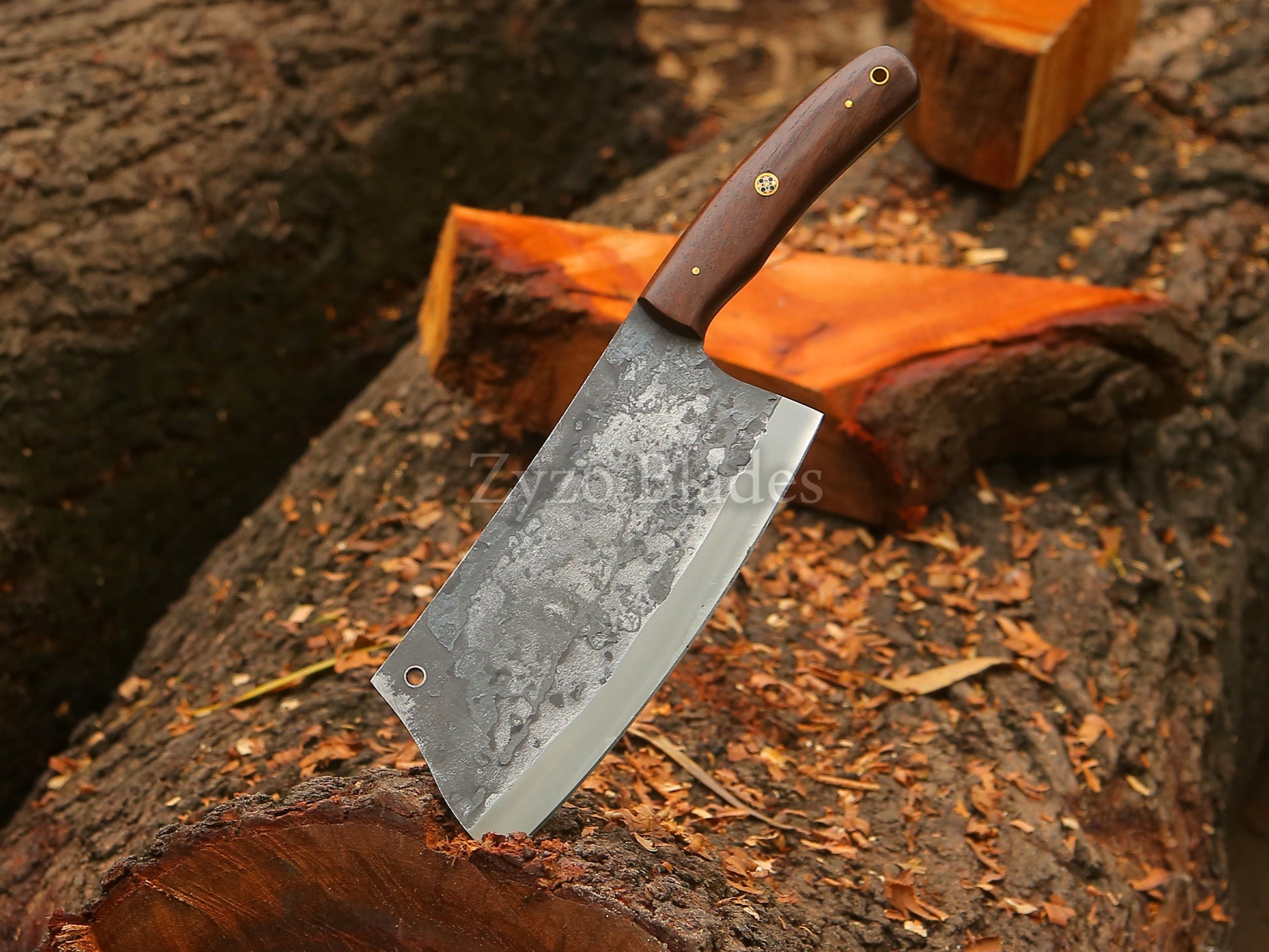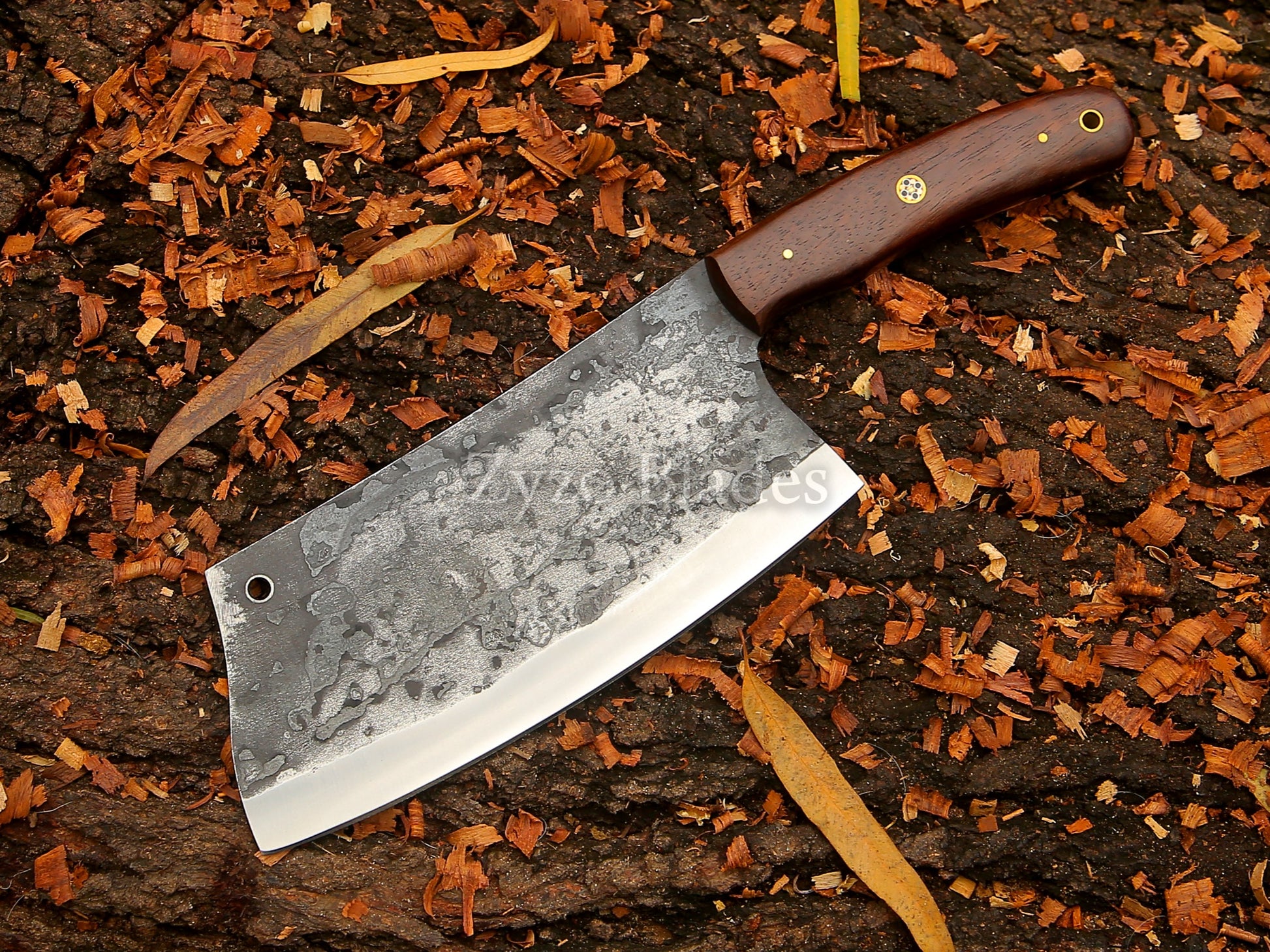 Our knives are 100% hand forged from premium high carbon steel which results in a high carbon content blade and long lasting edge retention. High carbon Damascus steel blades will begin to form a patina (a slight color change) with use which helps to stabilize freshly forged blades and become more rust resistant overtime